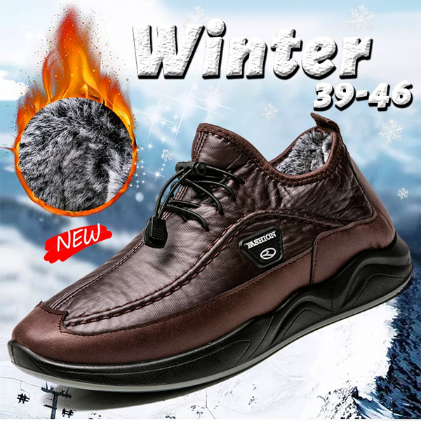 - Men plush lining warm elastic lace non slip casual leather shoes clearance
