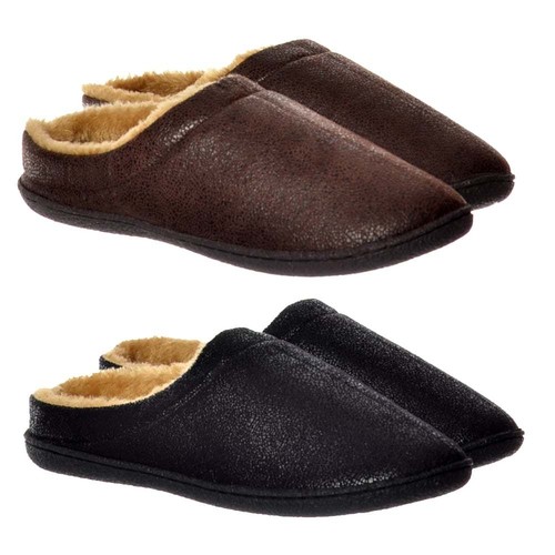 - Mens leather look slippers