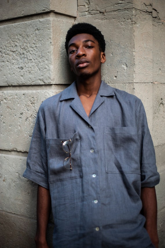 Linen camp collar shirt clearance, Linen Camp Collar Men's Shirt Oversize clearance