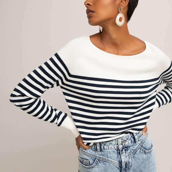 Pull mariniere la redoute clearance, Pull marinière coton bio rayé ivoire/marine La Redoute Collections | La Redoute clearance