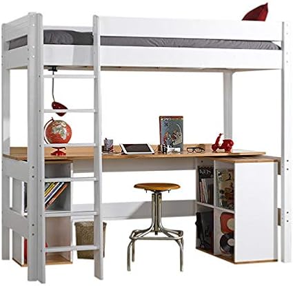 Lit 90x190 mezzanine clearance, Lit mezzanine 90x190 cm avec bureau chauffeuse et rangements en bois et blanc armand clearance