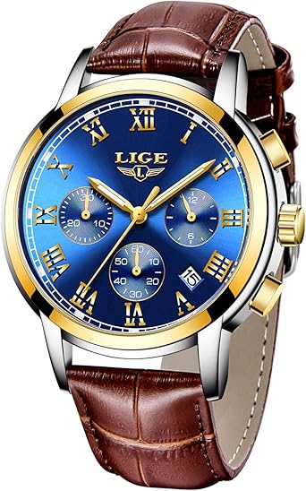 Montre lige homme amazon clearance, LIGE Montre pour Homme Élégant Mode Haute Qualité Designer Montre Femme Mouvement à Quartz Étanch Chronographe Bracelet Cuir Marron Date Calendrier (Bleu): Amazon.fr: Montres clearance
