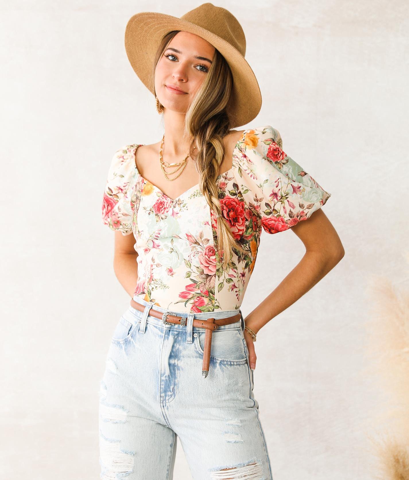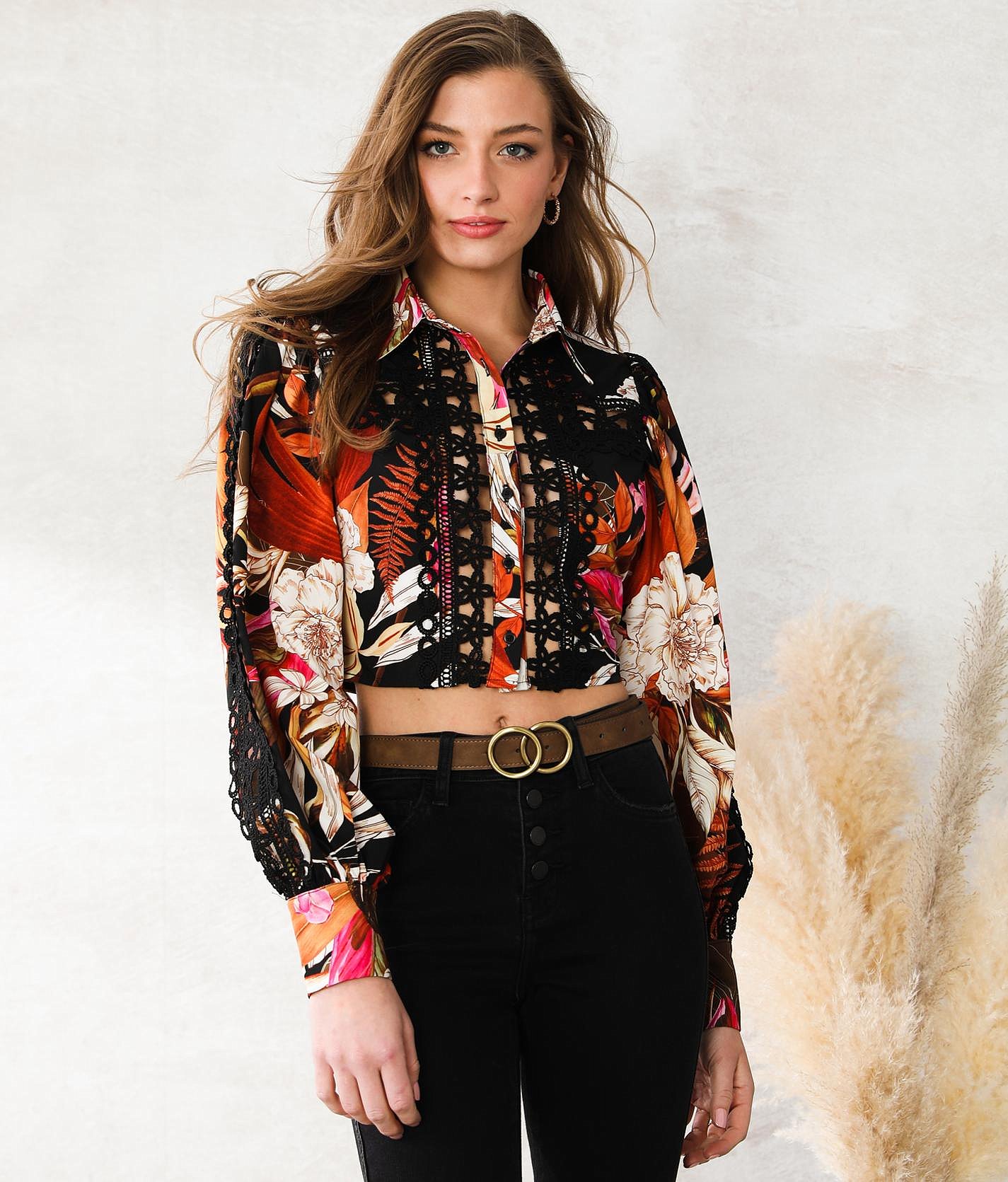 Peach floral shirt clearance, A. Peach Floral Cropped Blouse - Women clearance