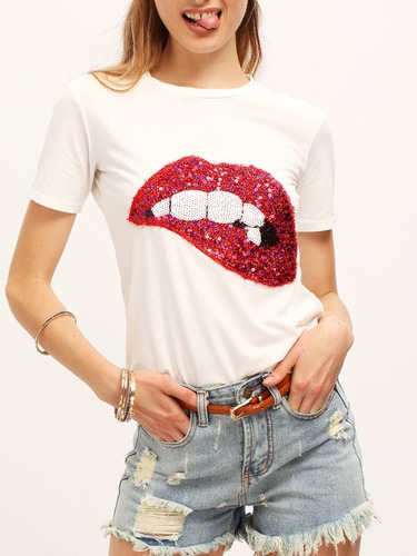 Polera labios rojos clearance
