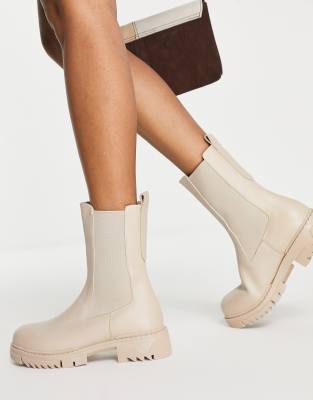 Na kd chunky boots clearance, NA-KD leather chunky boot in beige clearance