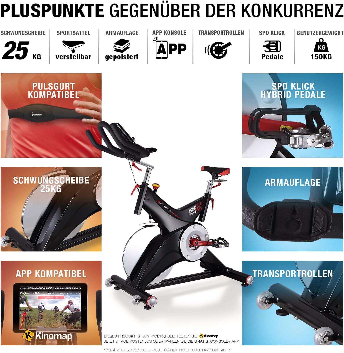 Sportstech sx500 amazon clearance, Sportstech SX500 Professional Indoor Exercise Cycle - Studio Quality Speed Bike with Smartphone App Control / 25 kg Flywheel / Arm Supports / Compatible with Heart Rate Belt / with SPD Click clearance