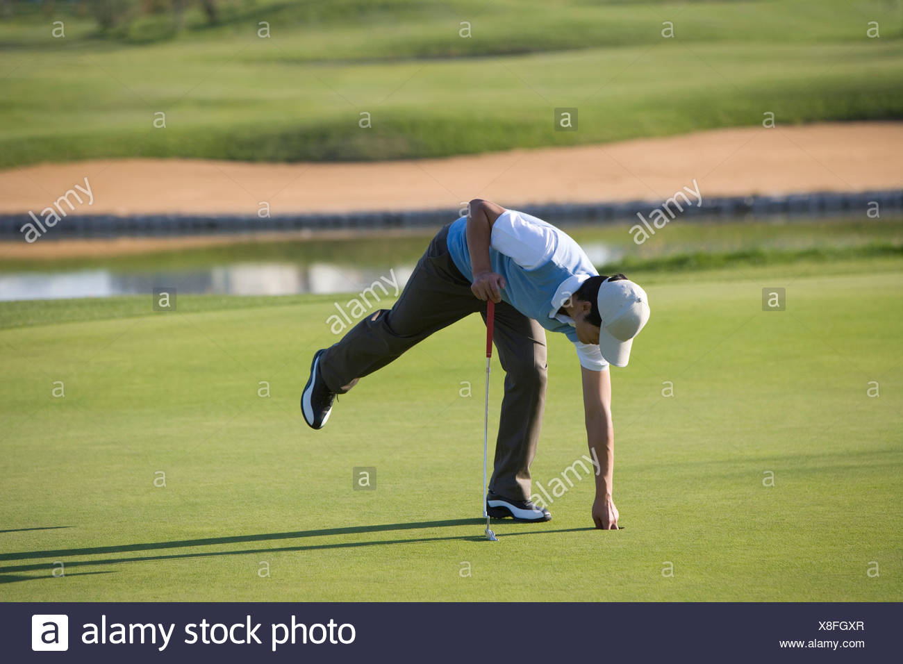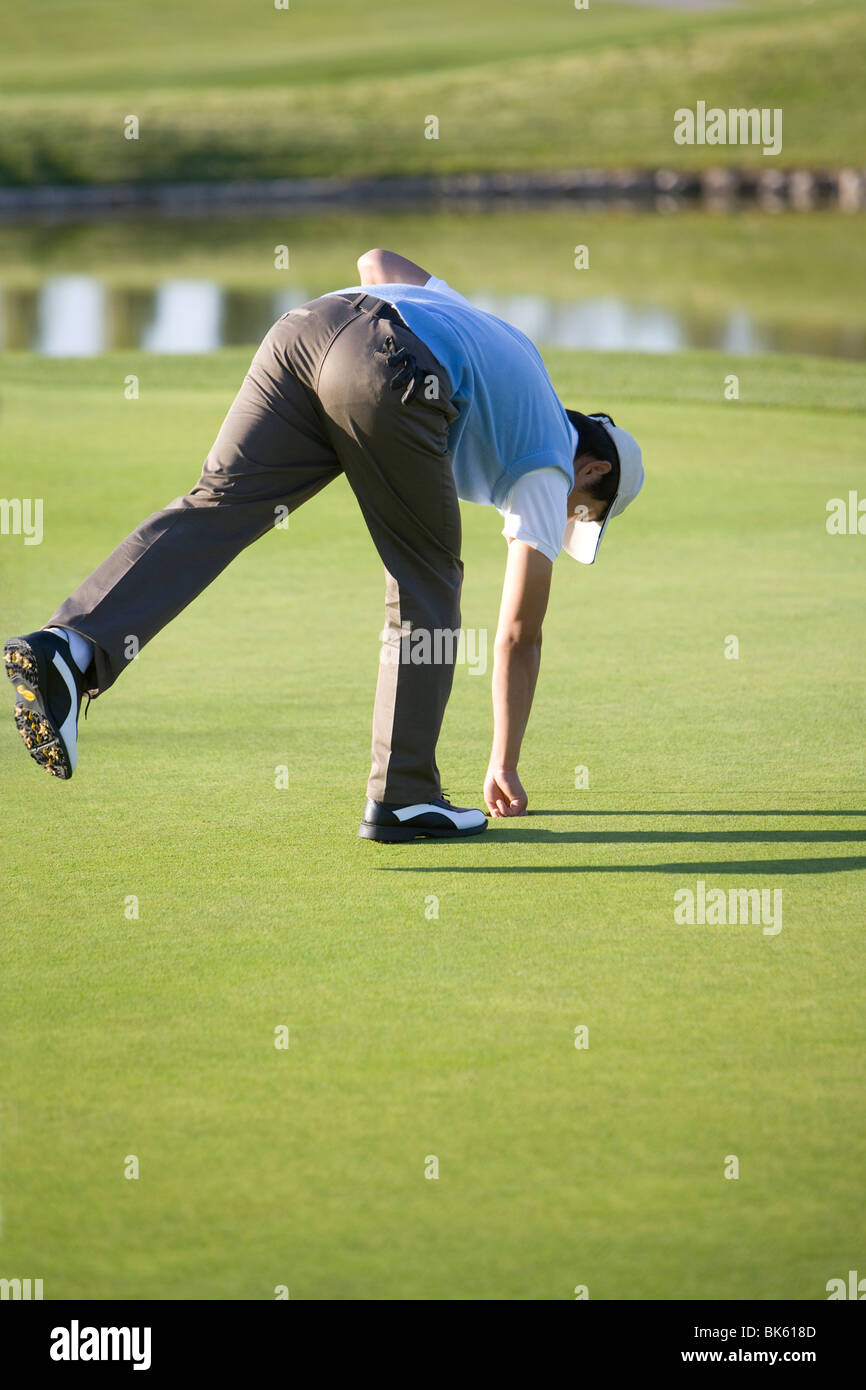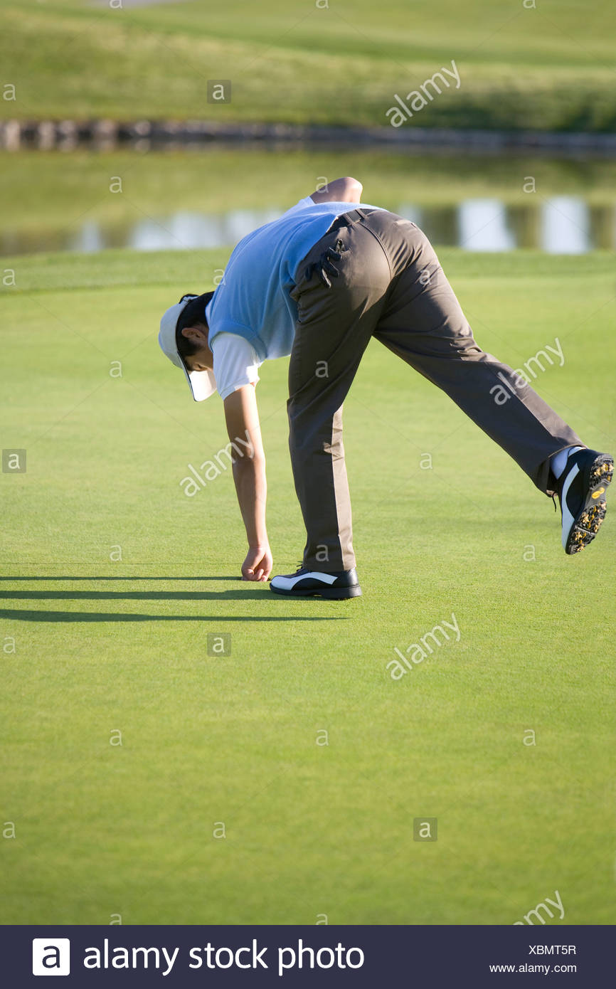 Picking up golf balls clearance, Man picking up golf ball from golf hole clearance