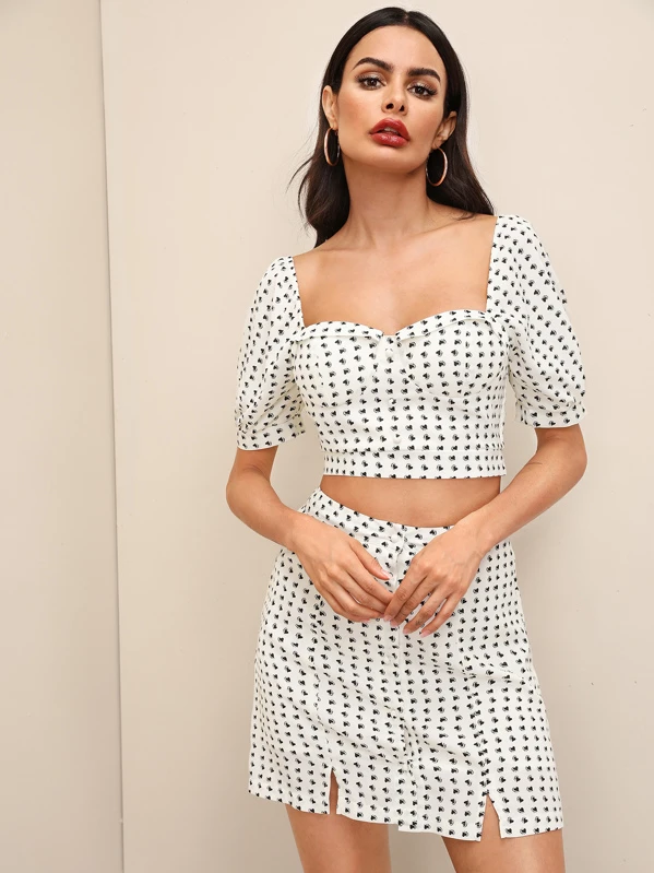 Ensemble jupe shein clearance, Ensemble top et jupe à imprimé cœurs | Mode en ligne | SHEIN FRANCE clearance