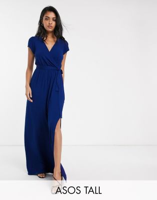 Asos tall robe clearance, ASOS DESIGN Tall - Robe longue cache-cœur avec liens noués à la taille - Bleu marine | ASOS clearance