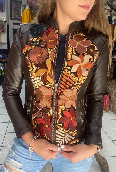 Chamarra de piel bordada clearance