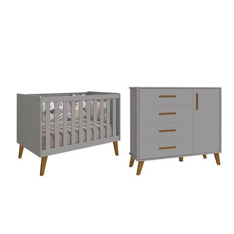 Berço com comoda cinza clearance, Berço e Cômoda Retro Moveis Peroba Louis 100% MDF Cinza Cedro nas americanas clearance