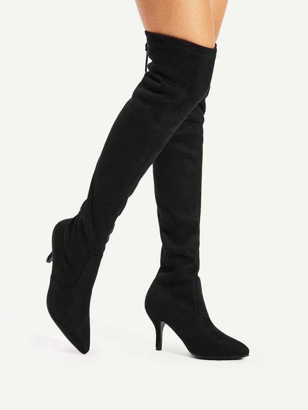 Cuissardes bout pointu clearance, Cuissardes en tissu noir à talon et à bout pointu clearance