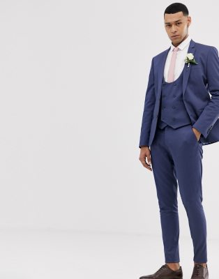 Asos costume homme mariage clearance, ASOS DESIGN wedding super skinny suit pants in stretch cotton in indigo blue | ASOS clearance