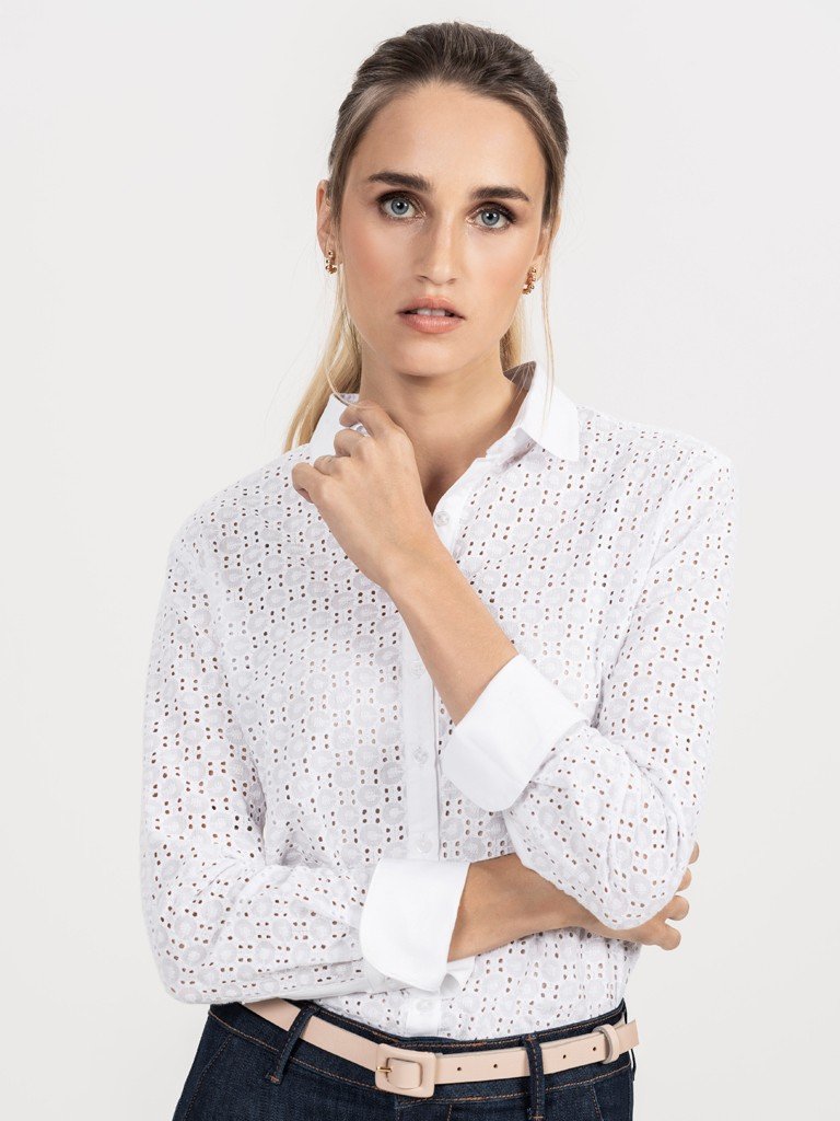 Camisa laise branca feminina clearance, Camisa Branca de Laise clearance