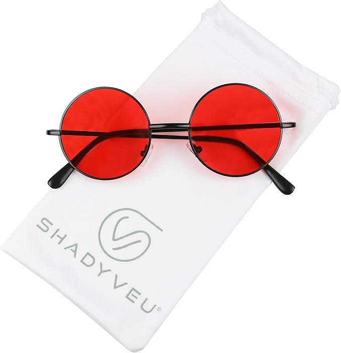 - Red tinted circle glasses free shipping