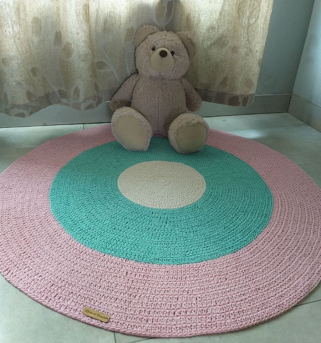 Tapete verde e rosa clearance, Tapete Redondo Fofinho Cinza,Verde eRosa no Elo7 | Criativo e Caprichado (97ABDF) clearance