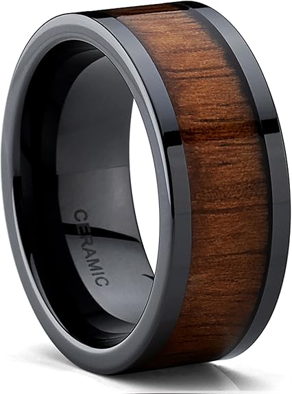 Bague homme ceramique clearance, 9MM Bague de mariage en ceramique noir avec Incrusté Du Bois. Pour Homme Intérieur Confort: Amazon.fr: Bijoux clearance