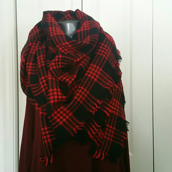 Red and black checkered scarf clearance, Black Checkered Blanket Scarf | Poshmark clearance