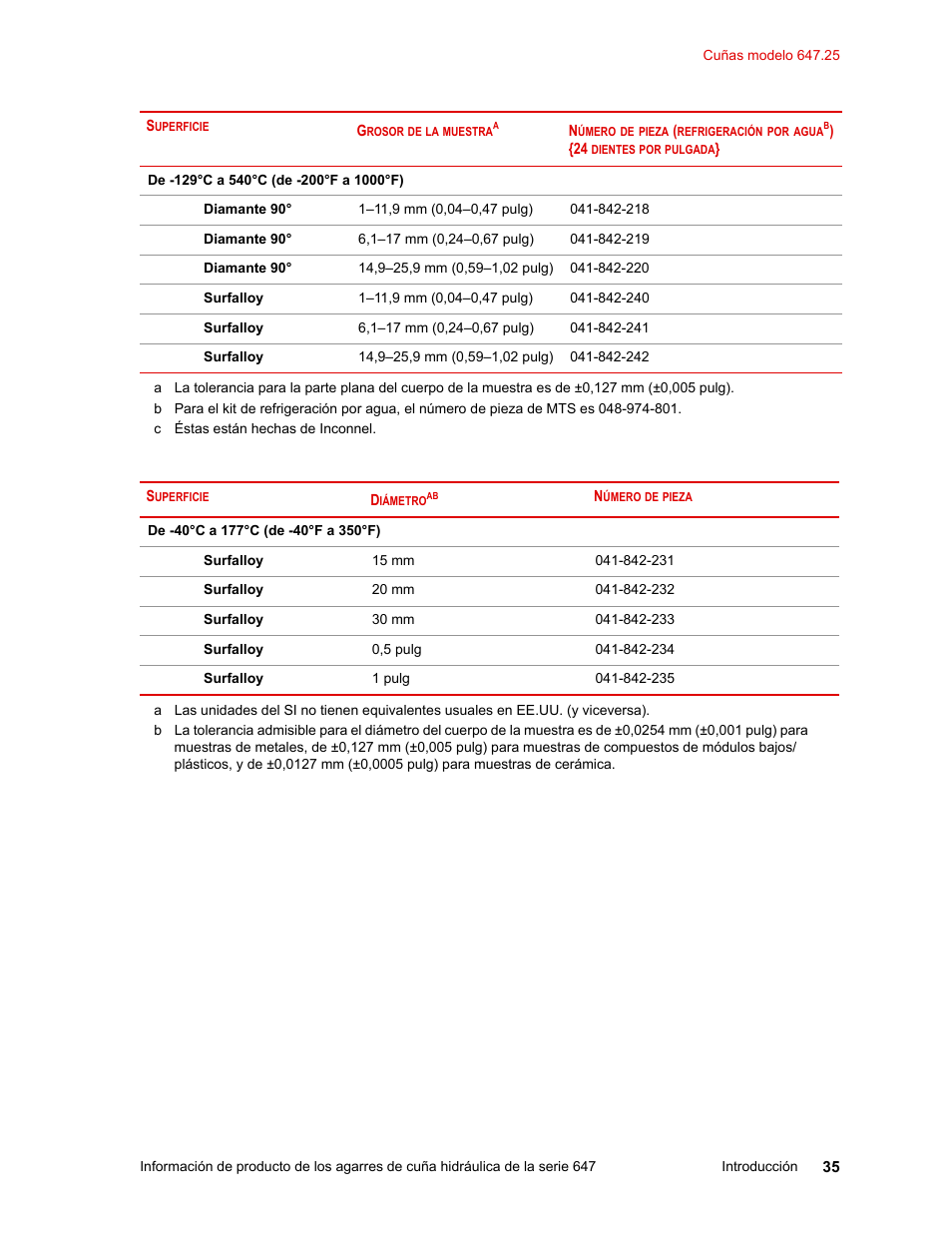 Cuñas numero 35 clearance, MTS Agarres de cuña hidráulica de la serie 647 Manual del usuario | Página 35 / 102 | Original clearance