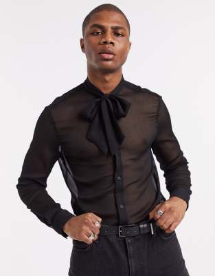 Black pussybow shirt clearance, ASOS DESIGN regular fit sheer pussybow clearance