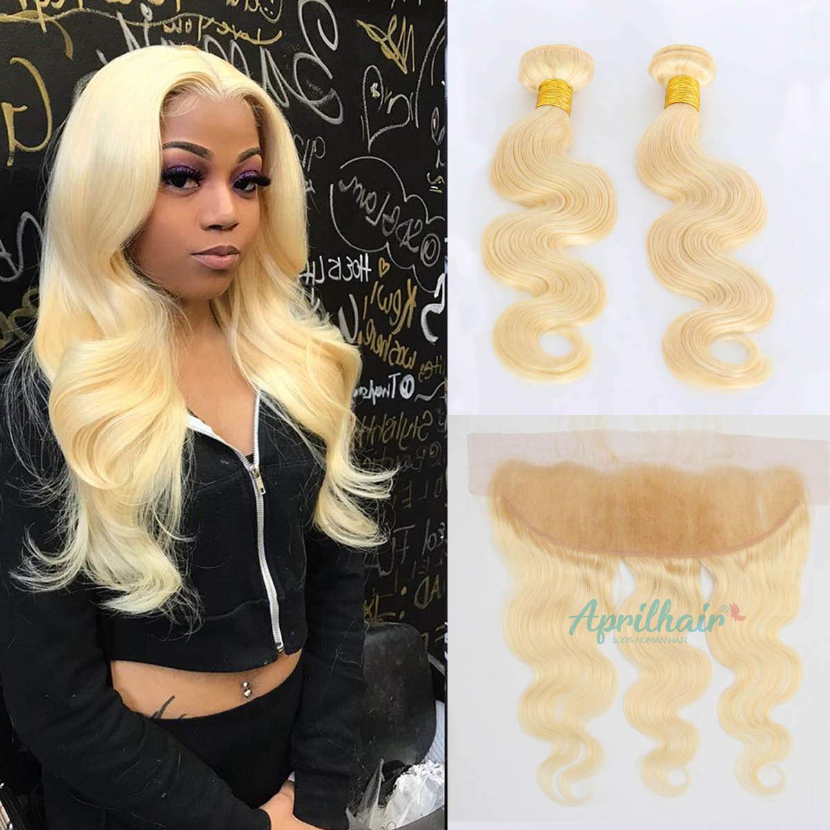Platinum blonde bundles with frontal clearance, Aprilhair Pre-plucked #613 Platinum clearance