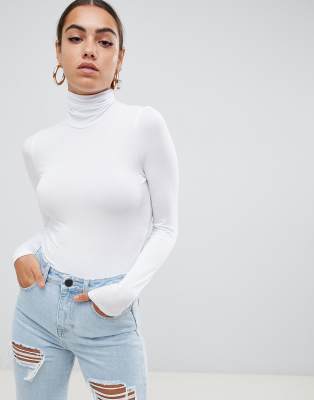 White mock neck bodysuit clearance