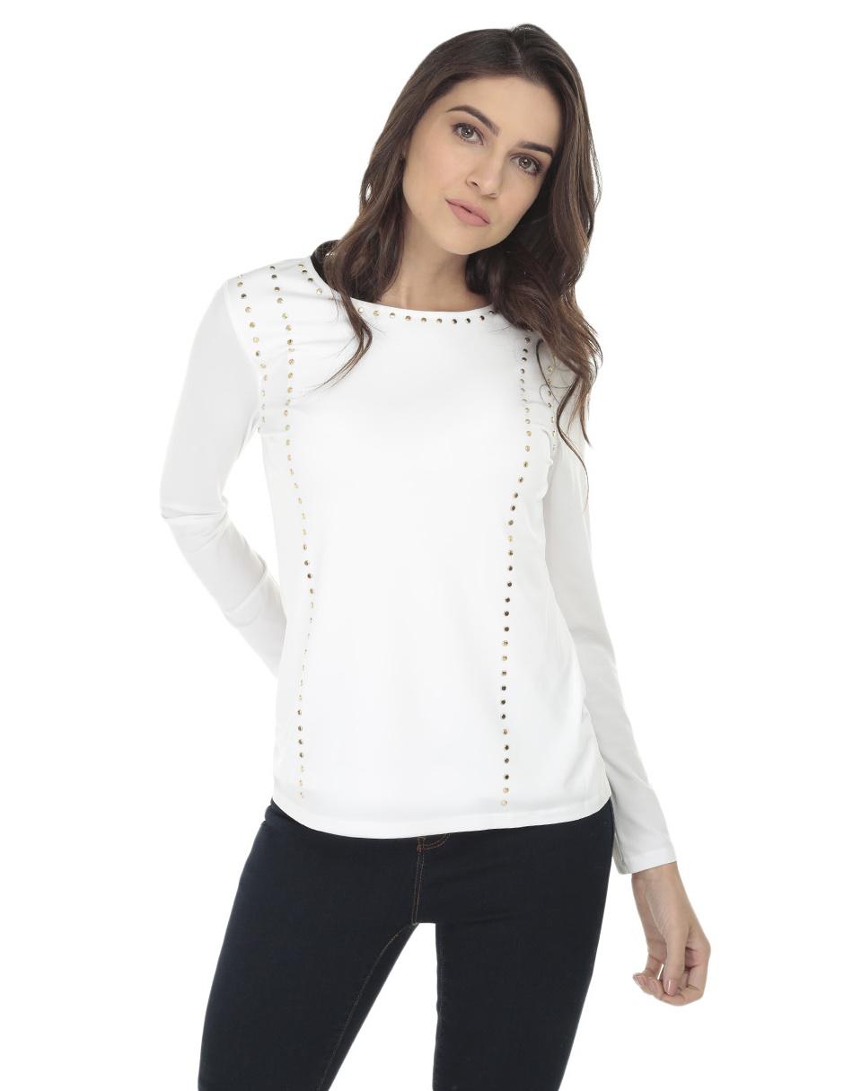 Blusa calvin klein blanca clearance, Blusa Calvin Klein blanca con aplicación metálica en Liverpool clearance