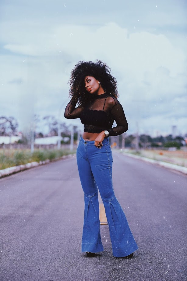 - Blusa de tule com calça jeans outlet