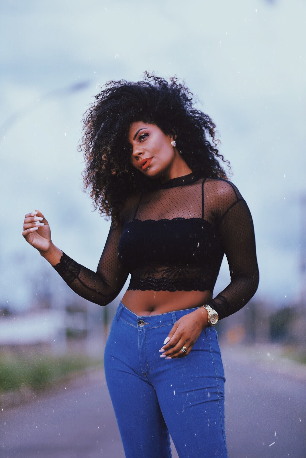 - Blusa de tule com calça jeans