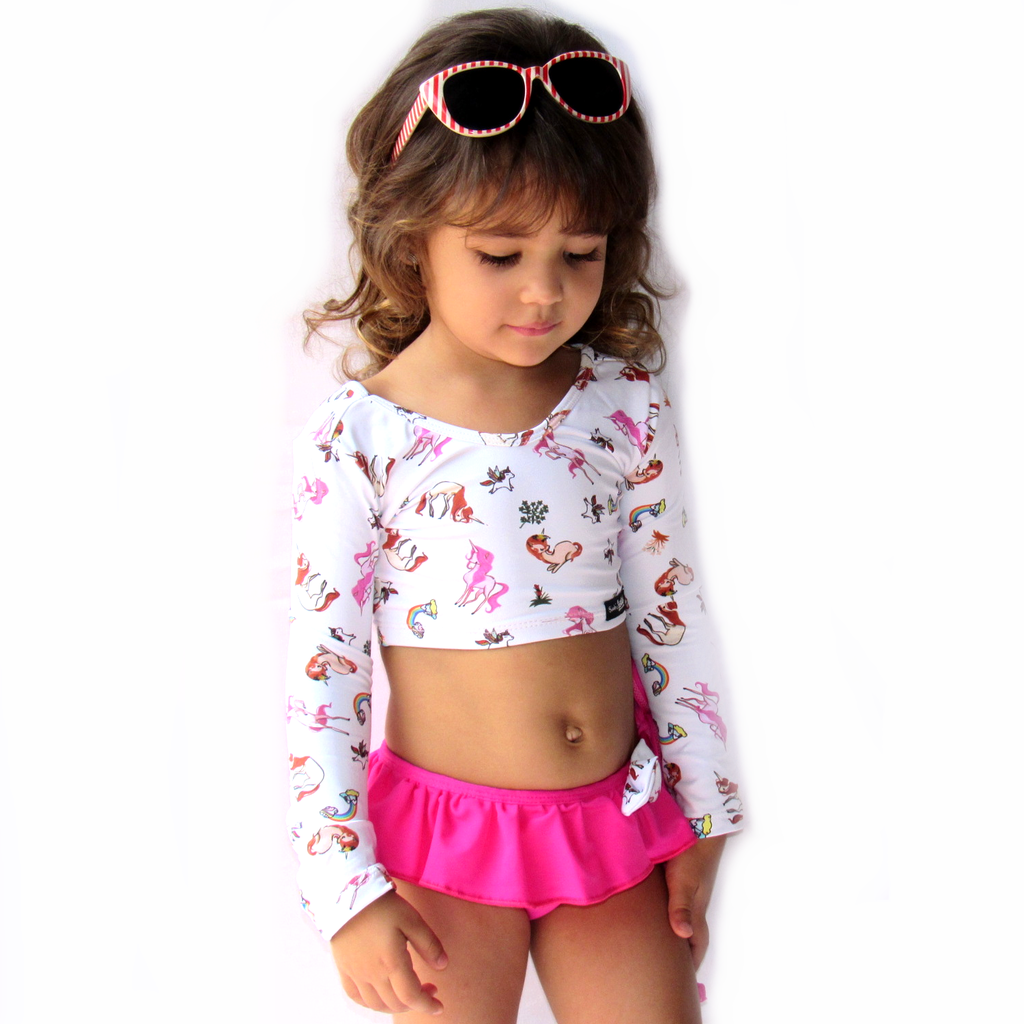 Biquíni bebe manga longa clearance, Conjunto biquíni baby cropped manga longa proteção solar UV 50+ - BeiraAmarRio clearance