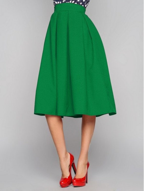 Jupe midi verte clearance, Jupe midi verte pour femme Femme daffaires Pli la jupe | Etsy clearance