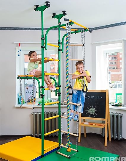 Jeu interieur enfant clearance, Vert aire de jeu pour enfant qui se connecte au sol intérieur \u0026/de plafond pour entraînement de Sport gymnastique avec accessoires : équipement Trapèze barre, corde, monte, corde, échelle anneaux Olympe/de gymnastique: clearance