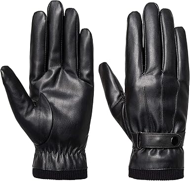 Mens black leather touchscreen gloves clearance, Men's Winter Black Faux Leather clearance