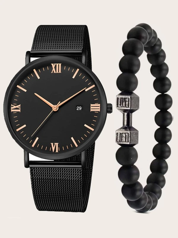 Relogio masculino quartzo clearance, Relógio masculino de quartzo com ponteiro redondo de 1 unidade e pulseira de contas de 1 unidade | SHEIN Brasil clearance