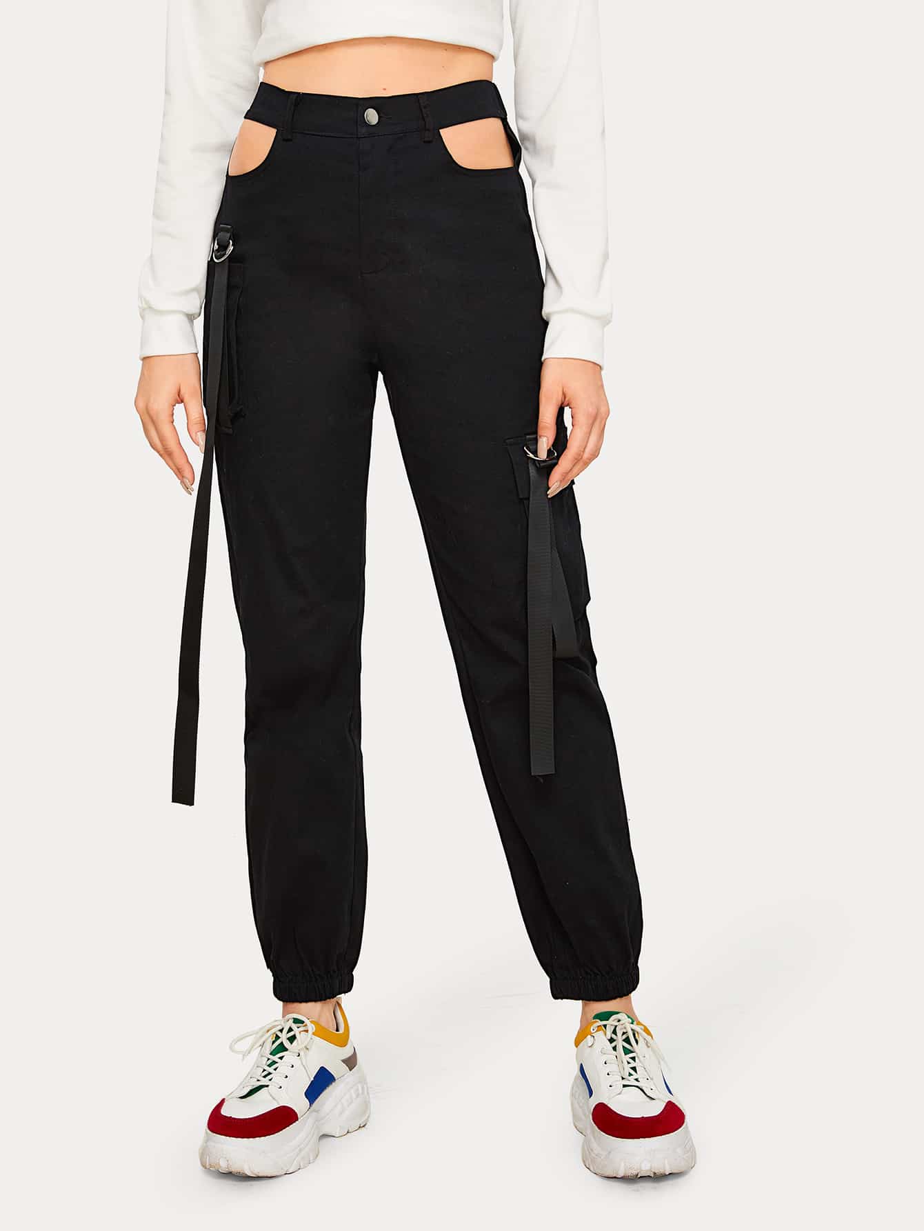 Romwe pantalon cargo clearance, Pantalon cargo avec poches et découpe | ROMWE clearance