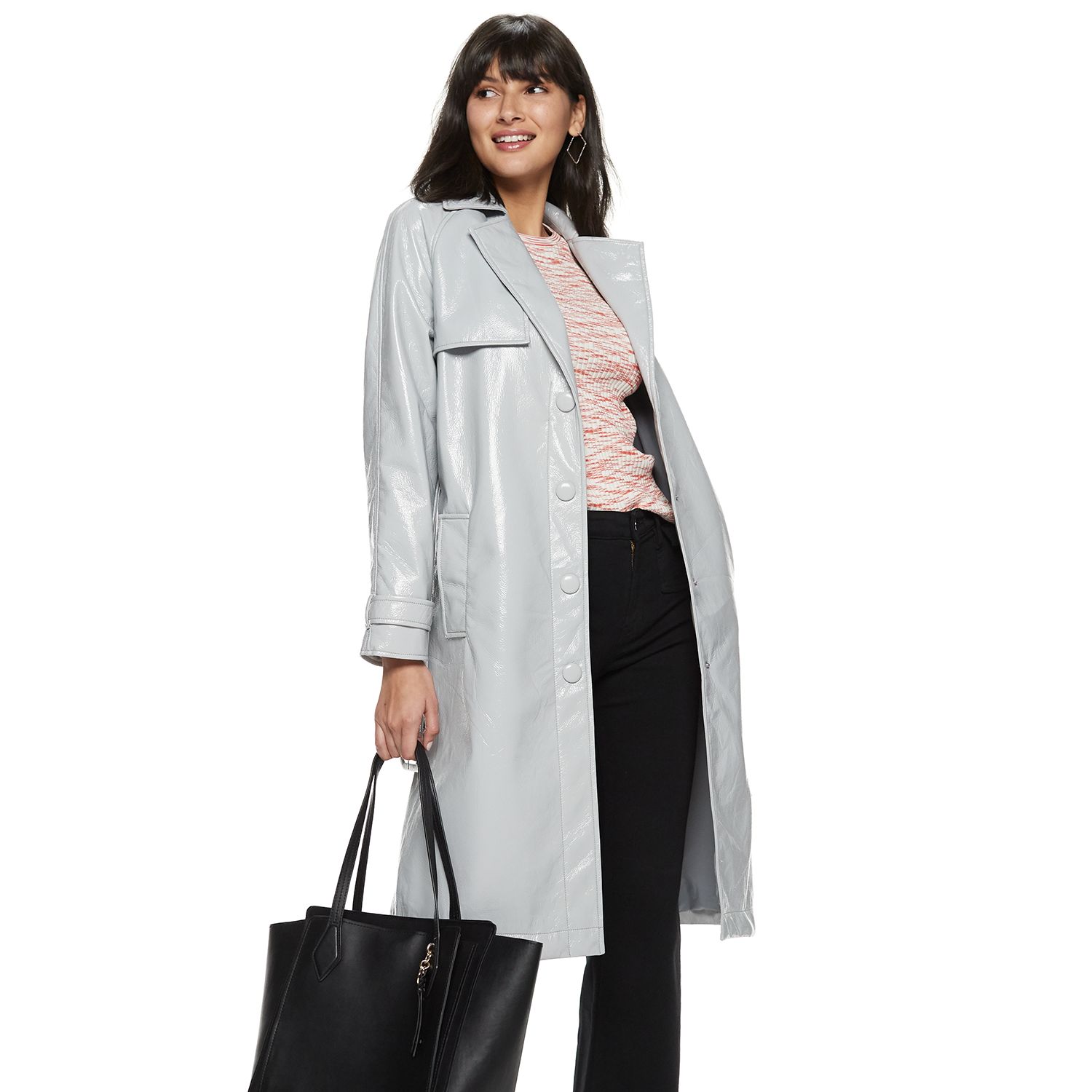 - Grey leather trench coat clearance