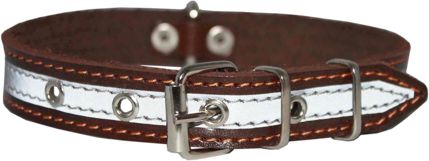 Leather reflective dog collar clearance, Amazon.com : Genuine Leather Reflective clearance