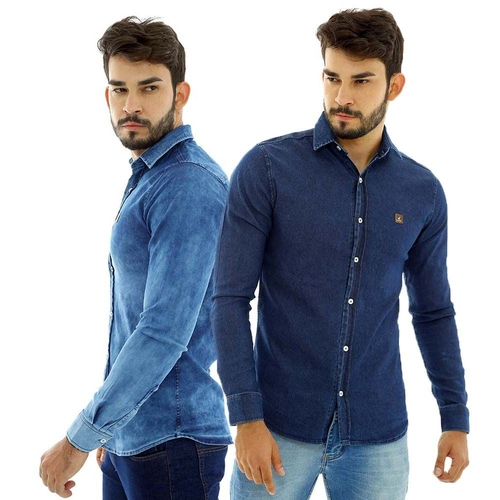 - Camisas jeans masculina manga longa