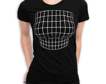Boob grid shirt clearance, Magnified Chest Optical Illusion Grid clearance