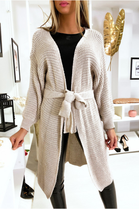 Gilet femme avec ceinture clearance, Long gilet ceinturé Femme - Gris clair - Pulls et gilets - Femme - Promod clearance