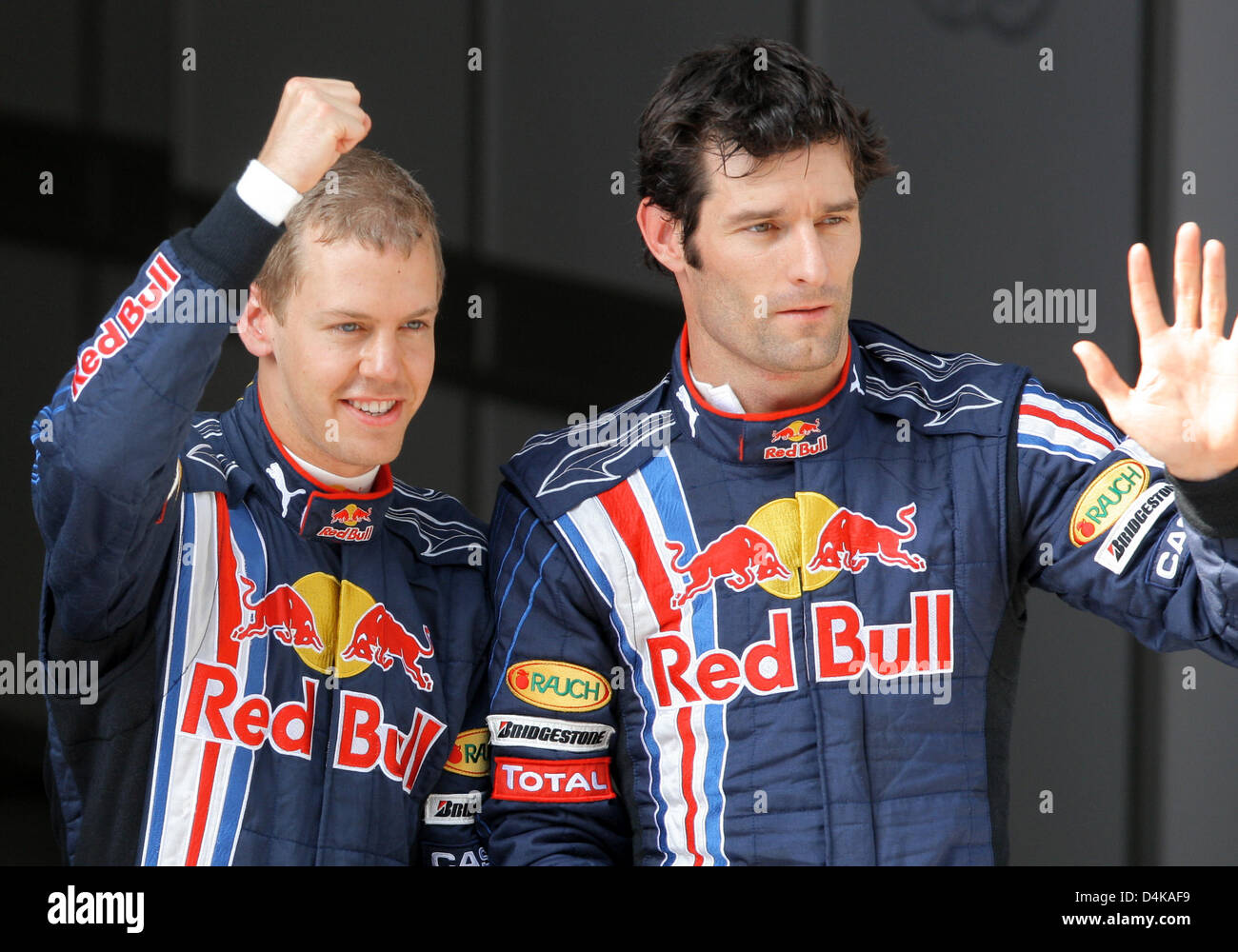Vettel 2009 clearance, German Formula One driver Sebastian Vettel of Red Bull Racing (L) celebrates conquering pole position in the qualifying session at Shanghai International Circuit in Shanghai, China, 18 April 2009. Vettel took pole clearance