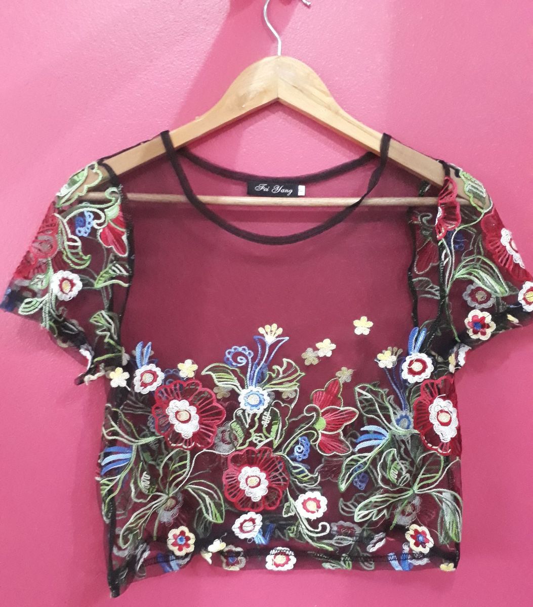 Blusa de tule bordada com flores clearance, Blusa Tule Bordado Flores | Blusa Feminina Laissez Faire Nunca Usado 27678693 | enjoei clearance
