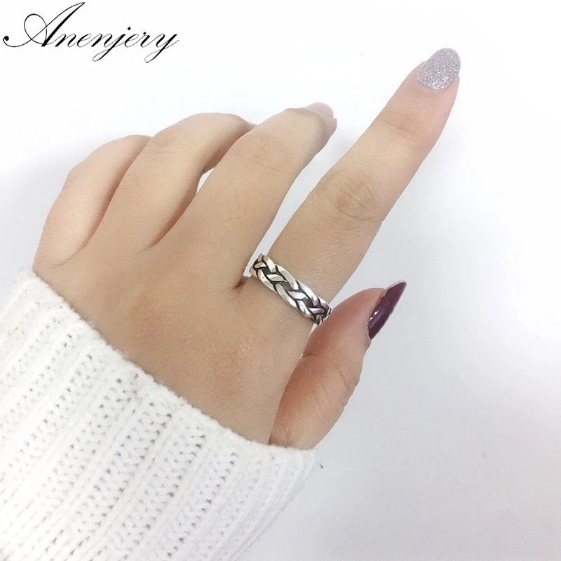 Bague argent index clearance, ANENJERY 925 argent Sterling Vintage personnalité ethnique vent Thai argent tissage Index queue anneau pour hommes femmes anneau S R360 | AliExpress clearance