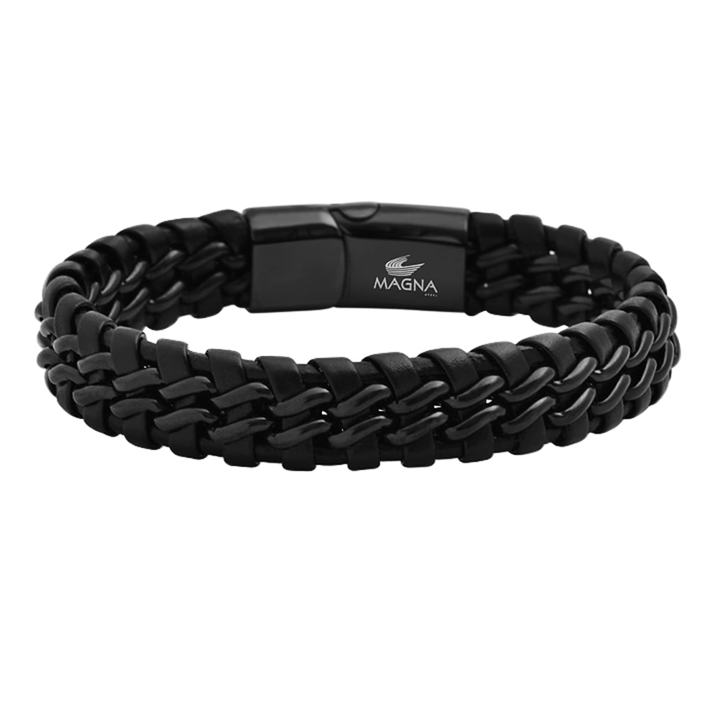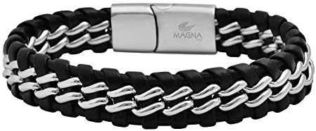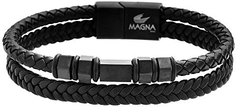 Magnésite bracelet clearance, Magna Steel - Magna Steel Men's Braided Genuine Leather Link Steel Chain Bracelet with Magnet Closure, Black - Walmart.com - Walmart.com clearance