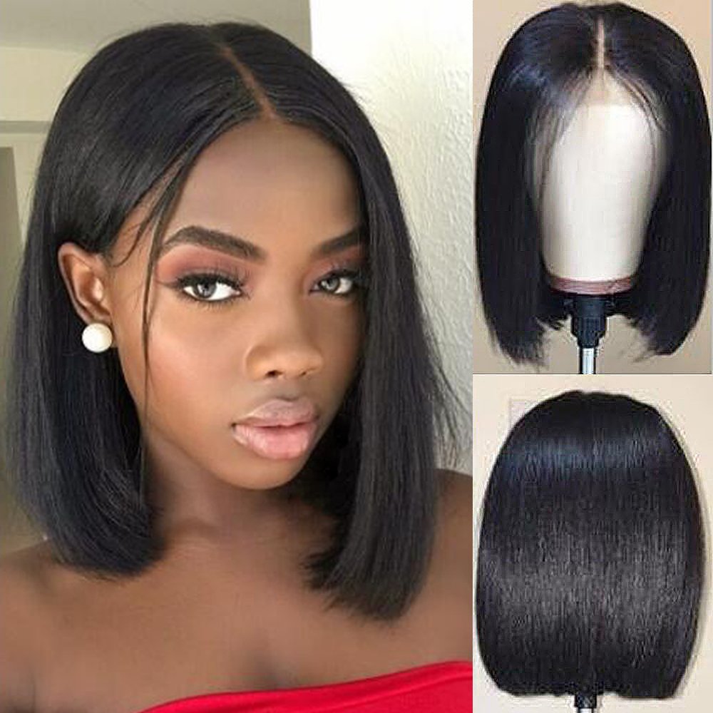 130 density bob wig clearance, Glueless Lace Front Human Hair Bob Wig clearance