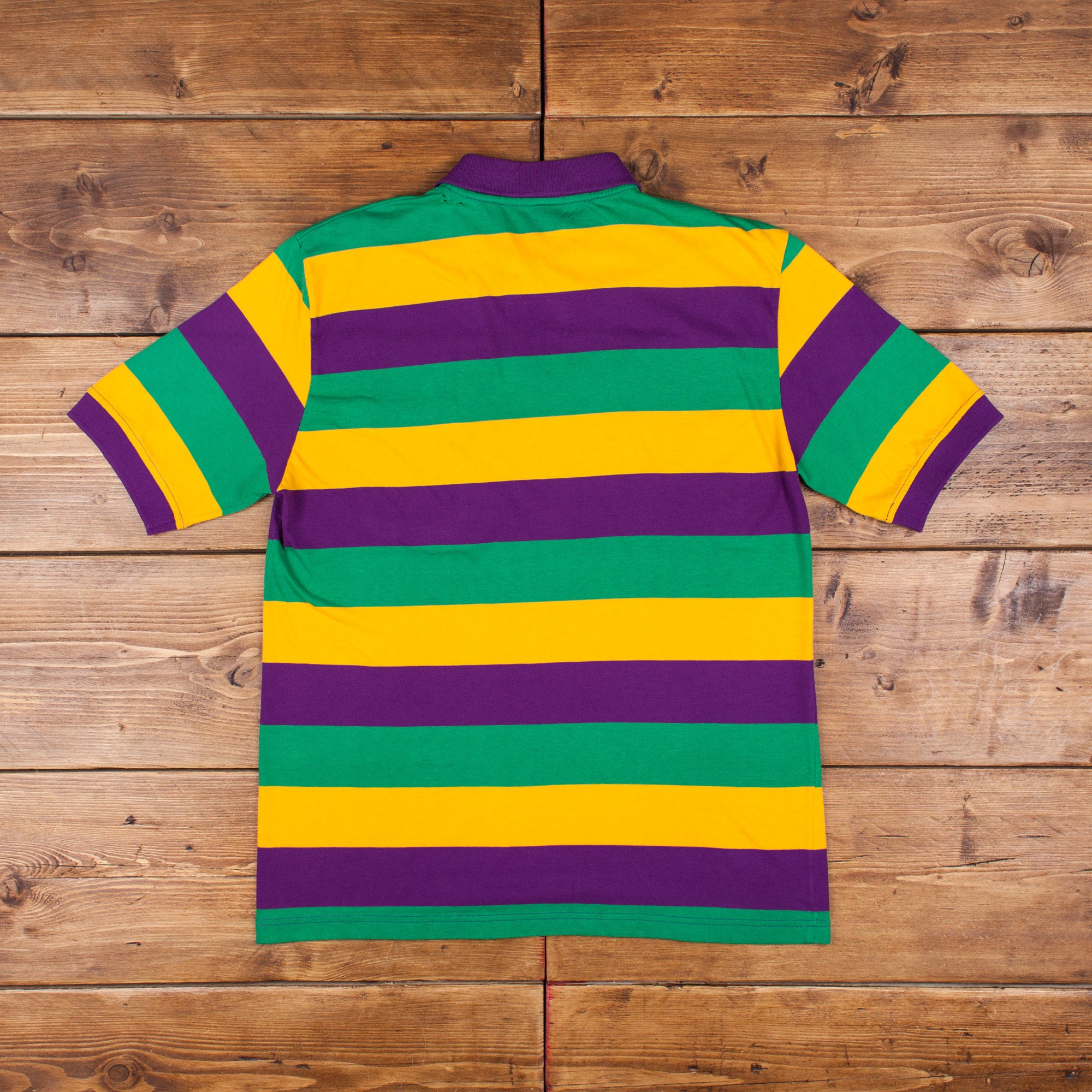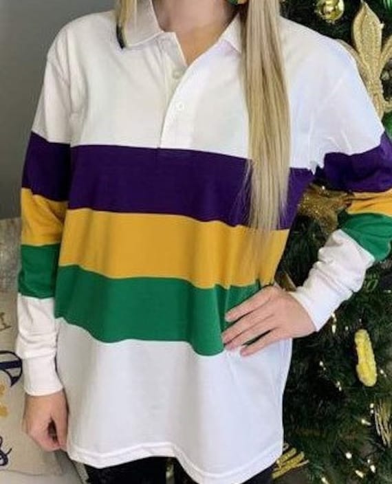 Mardi gras striped shirt clearance, Mardi Gras Creations Purple Green Gold All Over Striped Adult Long Sleeve Polo Shirt - Large clearance