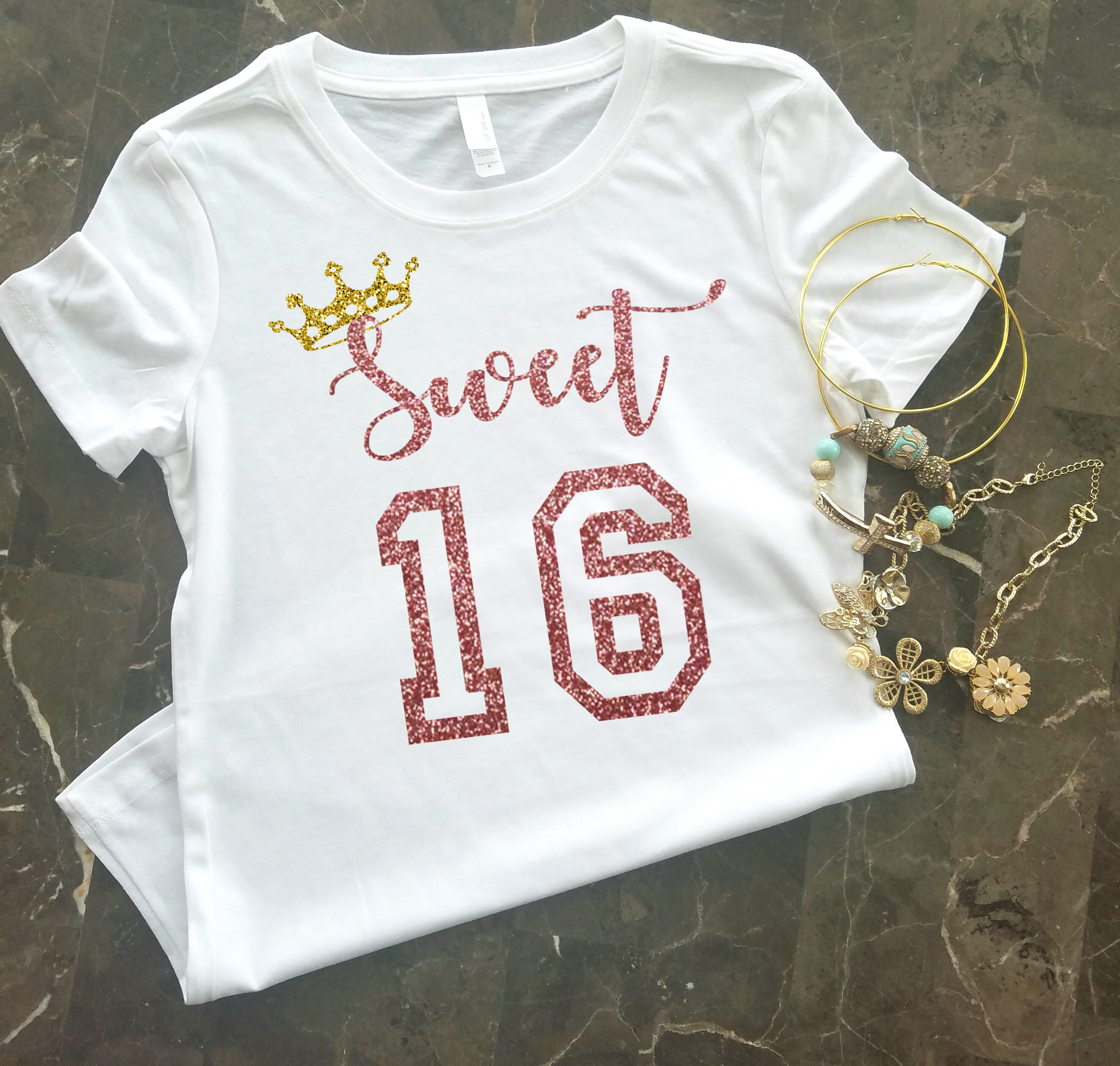 - Sweet 16 shirts glitter