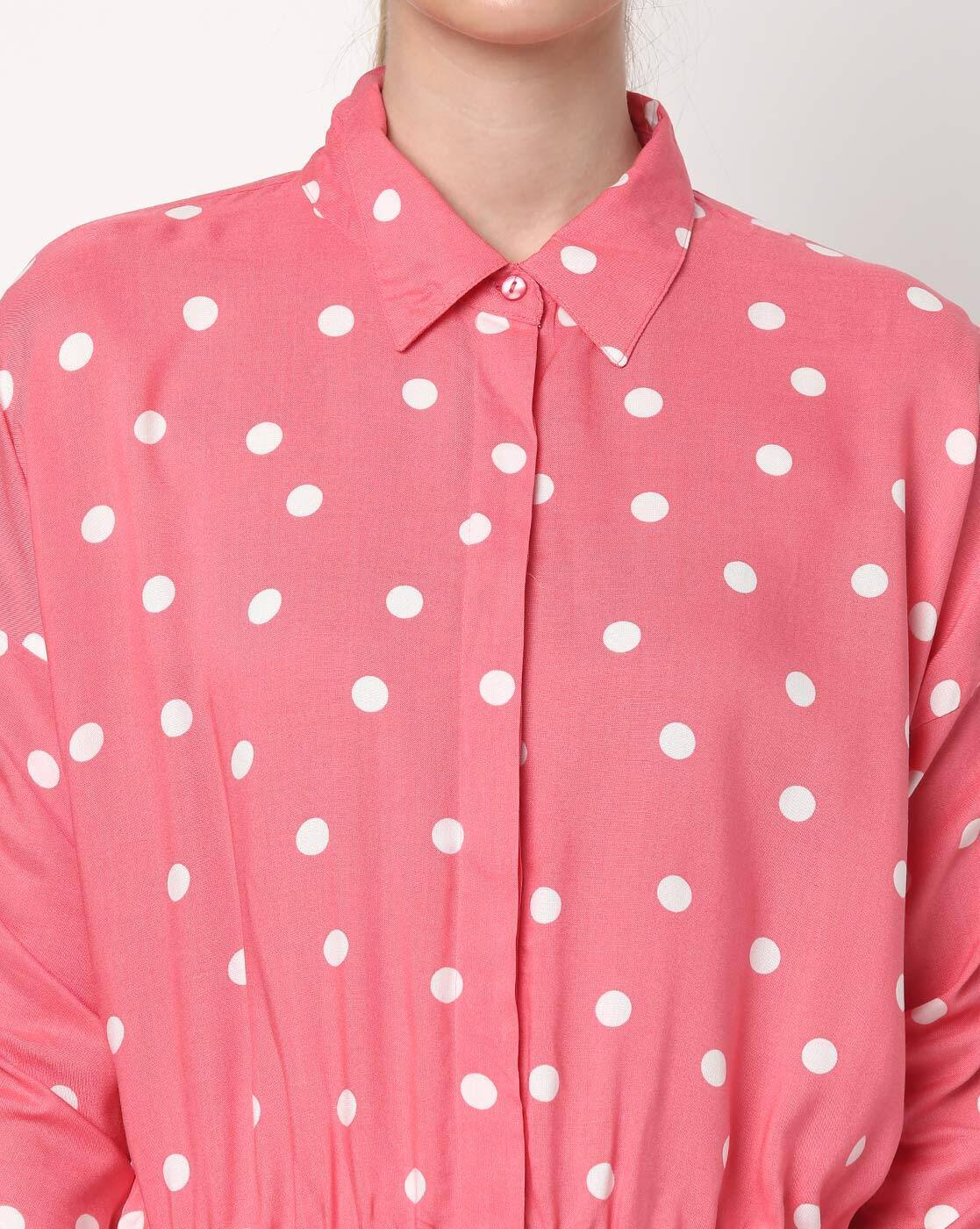 - Pink polka dot button up shirt shop
