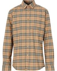 Burberry shirt cost clearance, Burberry Cotton Check Shirt, Beige, M clearance