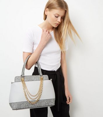 Snakeskin bag new look clearance, Grey Snakeskin Panel Chain Strap Tote clearance